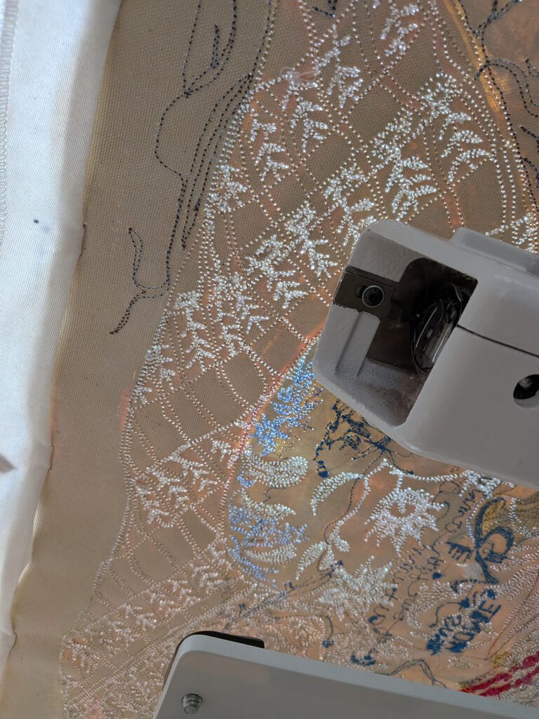 As I navigated across the surface via stitching stream-of consciousness, the composition began solidifying.